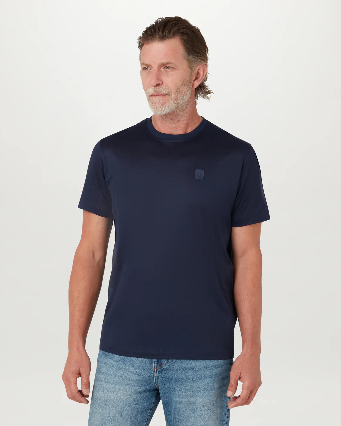 Our Steel T-shirt is a seasonal must-have and is available in various colours. This Dark Ink piece is crafted from soft organic mercerised cotton and features a crewneck with short sleeves for a timeless, versatile style.