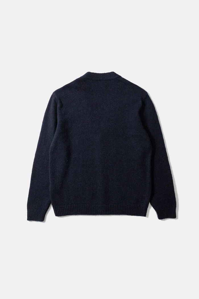 Navy blue button-down cardigan crafted from a wool and alpaca blend for a soft, fluffy, and slightly fuzzy finish. Finished with our iconic duck logo embroidered on the left chest. Made in Portugal.