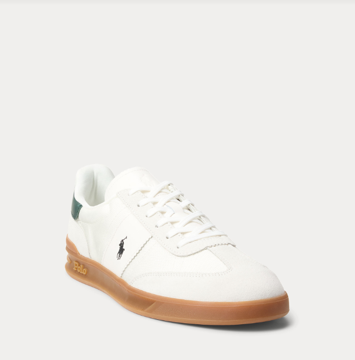 The Heritage Aera updates Polo’s classic sneaker with a vintage-inspired silhouette grounded by a rubber cupsole construction with integrated heel support and a dual-compound EVA midsole. Paneled with suede and oxford, it features nappa leather accents and our signature embroidered Pony.