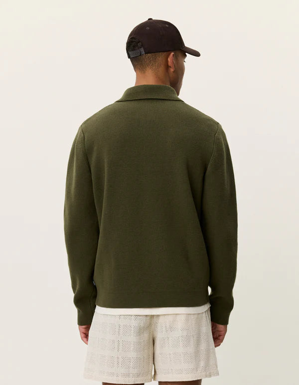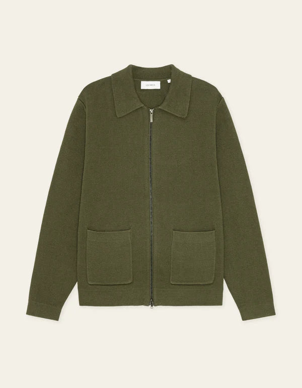 A structured knitted overshirt crafted in a heavy Milano knit for a clean, compact look. Designed with a classic collar and a straight silhouette, it works easily as a lightweight layer.