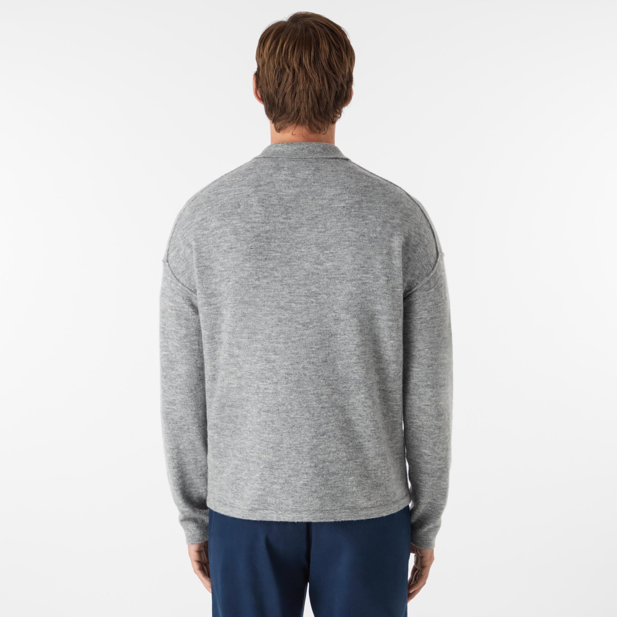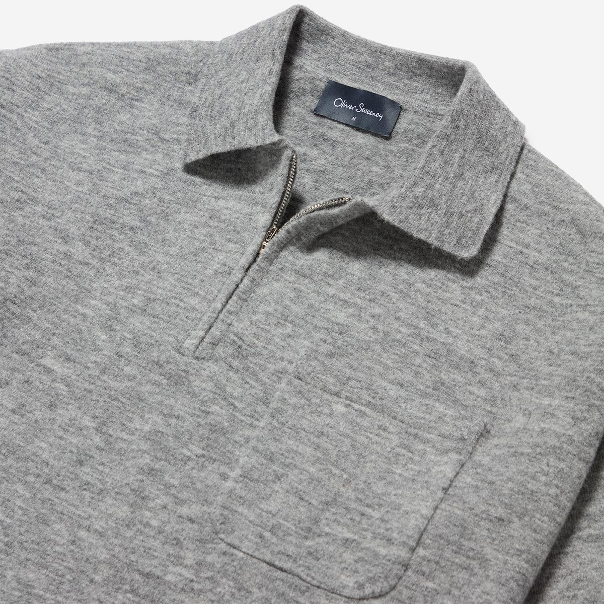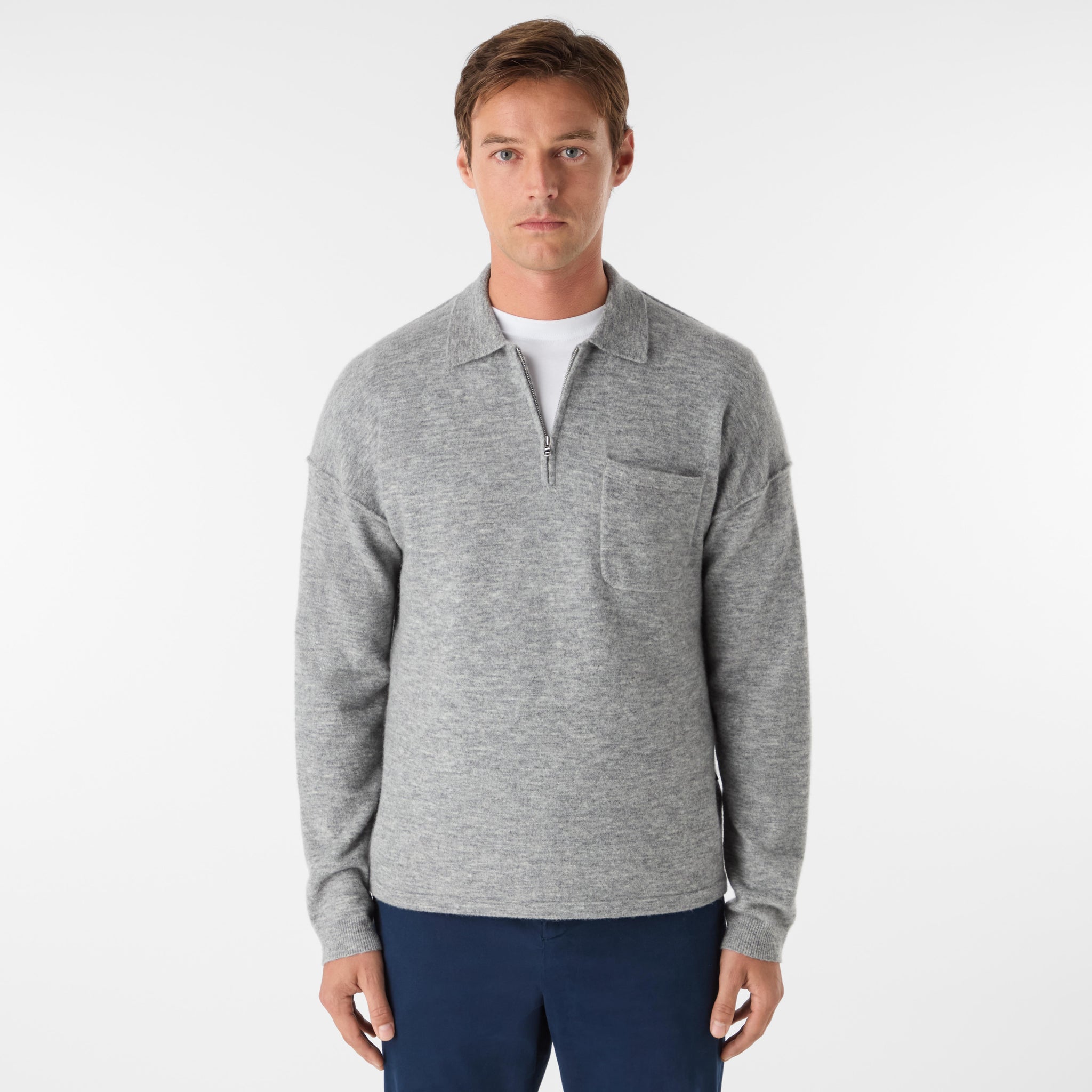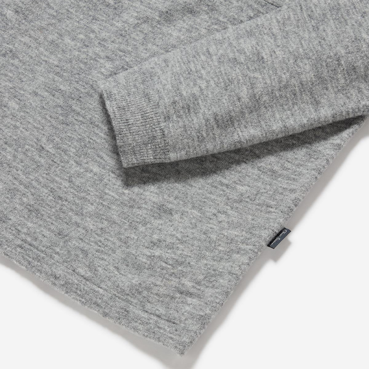 Our popular wool blend yarn with alpaca is back for the Autumn in grey marl with a new style. Prized as the king of wools in the Andes over thousands of years Alpaca fibres are fine with a smooth surface structure, which makes it soft, light and warm. The new quarter zip jumper has a relatively fine 12 gauge jersey knit with tubular seams at the base, around the silver zip and on the breast pocket. We’ve chosen a Milano stitch for the collar; a double knit with great stability, and a flexible rib stitch at the cuffs.