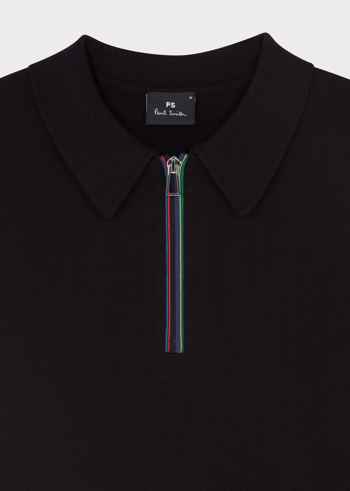 Made from 100% organic cotton this black short-sleeve polo features a half zip closure with vibrant 'Sports Stripe' detail. Cut for a regular-fit, this polo is finished with ribbed cuffs and waistband and offers an easy alternative to shirting when worn under tailoring.