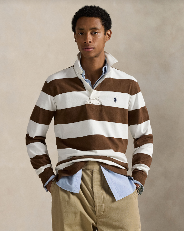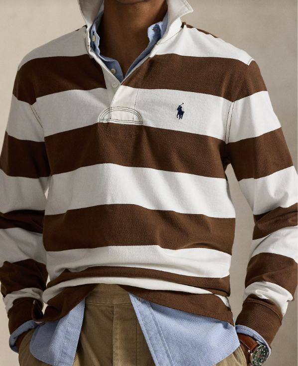 With its athletic details and timeless design, The Iconic Rugby Shirt captures the preppy yet sporty sensibility that has long defined the Polo Ralph Lauren brand. This version features all the hallmarks of a traditional rugby shirt—the distinctive stripe, white point collar, concealed placket, rubber buttons, and ribbed cuffs. Made with durable cotton jersey that stays true to the sport’s rough-and-tumble heritage, this shirt will stand up to repeated wear on and off the field of play.