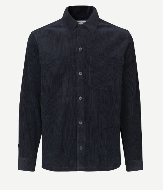 Long-sleeved corduroy shirt with a relaxed fit. Button closure on the front and buttoned cuffs. Patch pocket on the front. Neck yoke seam. Main material made from 100% cotton.