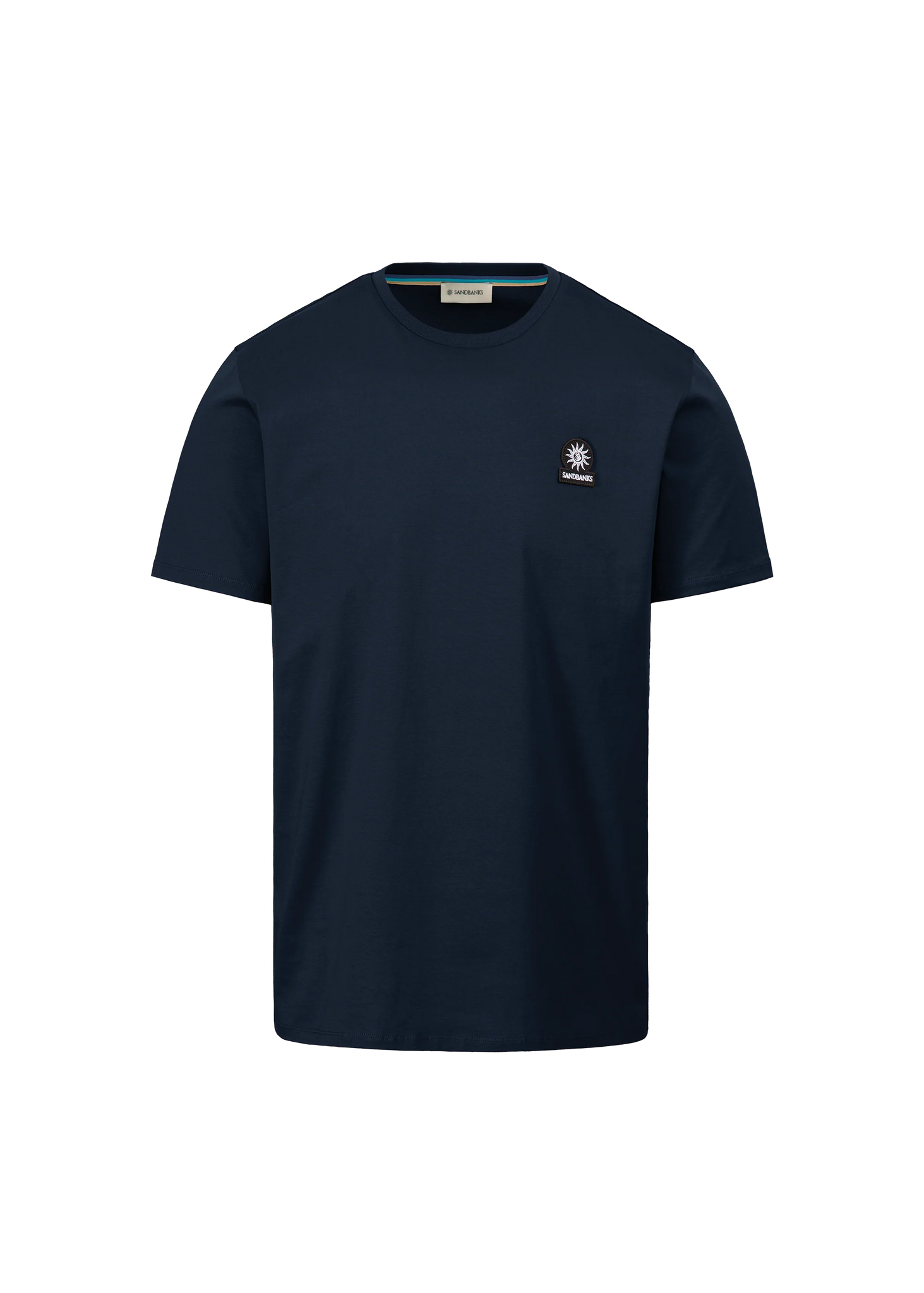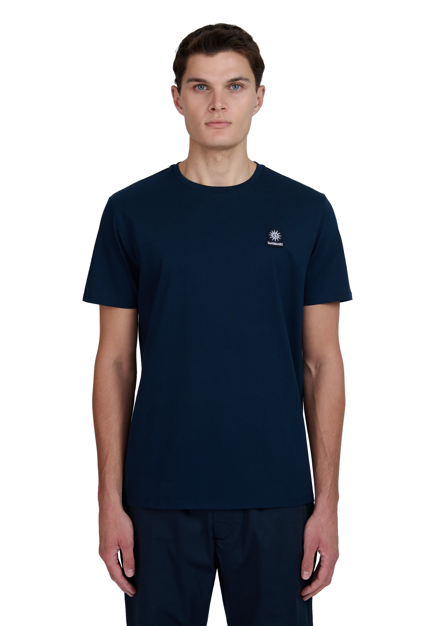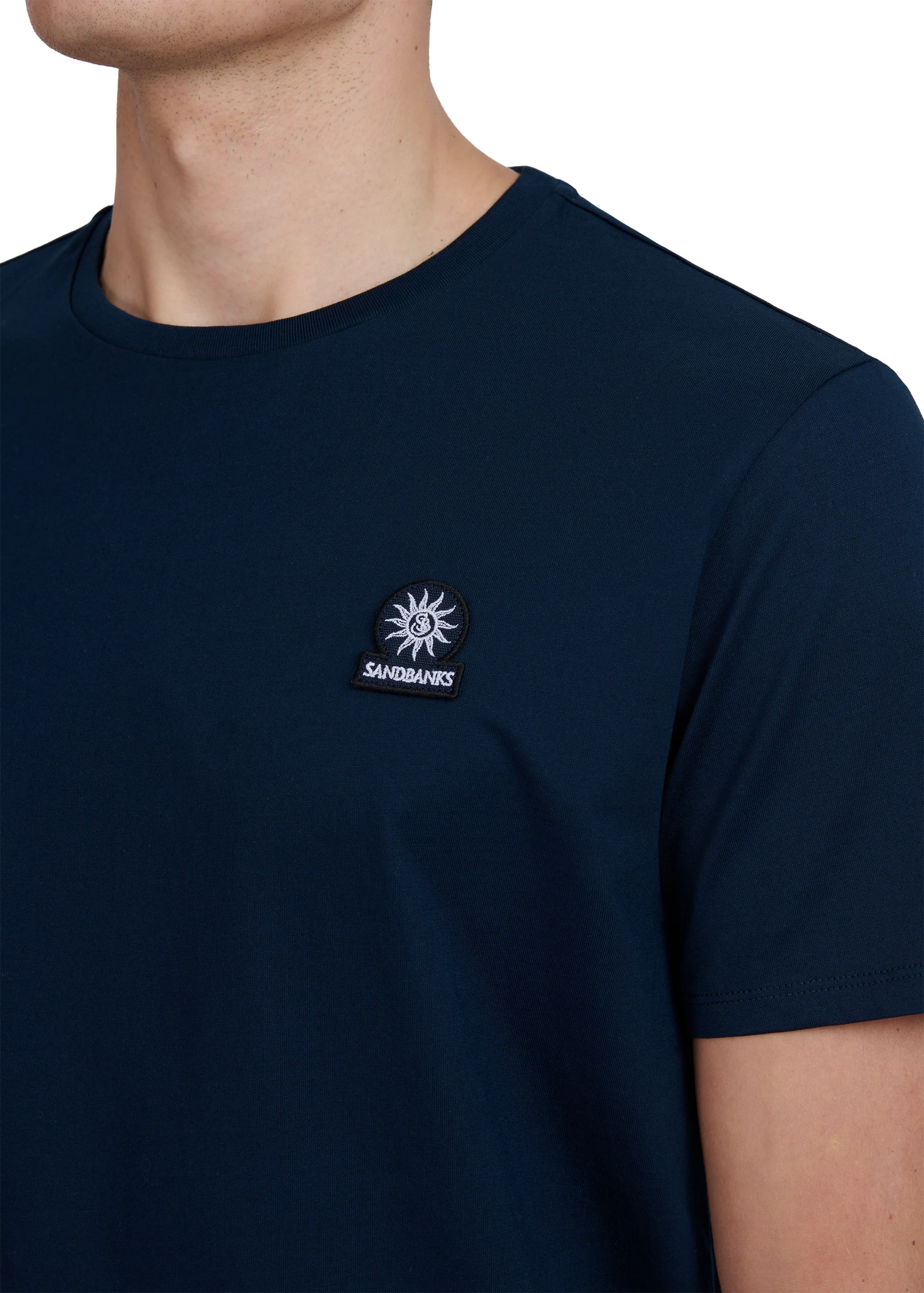 Sandbanks men's badge logo t-shirt in Anthracite, made from mercerised cotton for a silky and luxurious feel. This classic fitting crew neck t-shirt features an embroidered badge logo on the chest and tri-colour back neck binding.