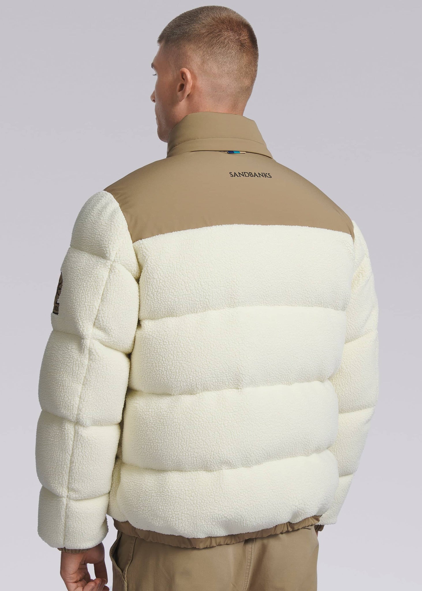 Sandbanks Peninsula puffer jacket in Polartec® Shearling Fleece, made from Thermal Pro®, brings advanced functionality to a classic, high-pile look. This Sandbanks Polartec® puffer jacket offers a luxurious texture, superior warmth and lightness due to it's 100% recycled natural down fill.