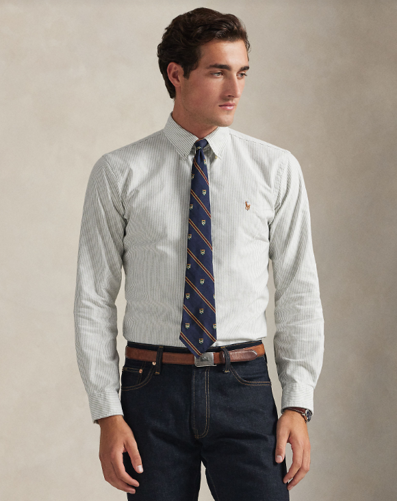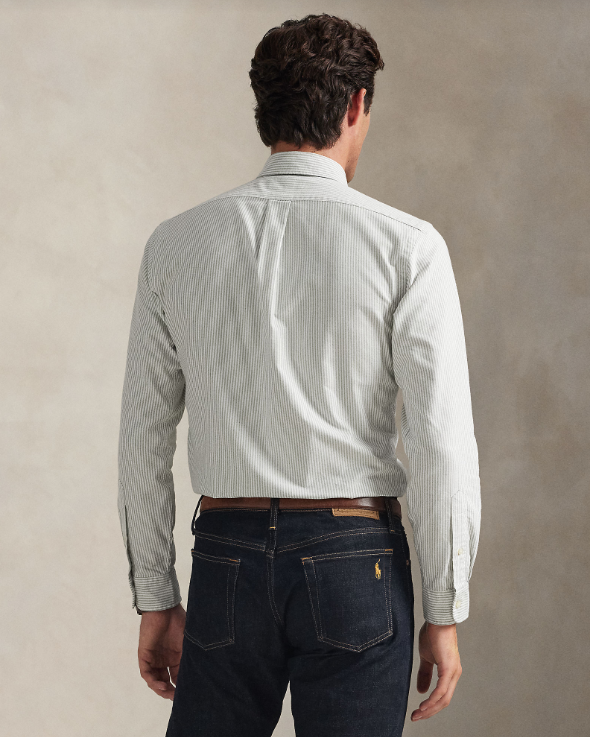 The oxford shirt made its debut very early on in Ralph Lauren’s designs, and since then it has solidified its status as a pillar of the Polo look. Our fabric is developed with a secret wash that gives it instant character, ease, and a heathered softness—what we call the perfect “rumple.” The formula is so unique, it’s been kept in a safe for more than three decades. Today, Mr. Lauren continues to create countless variations of his iconic shirt, including this striped version that is embroidered with our multicolored signature Pony.