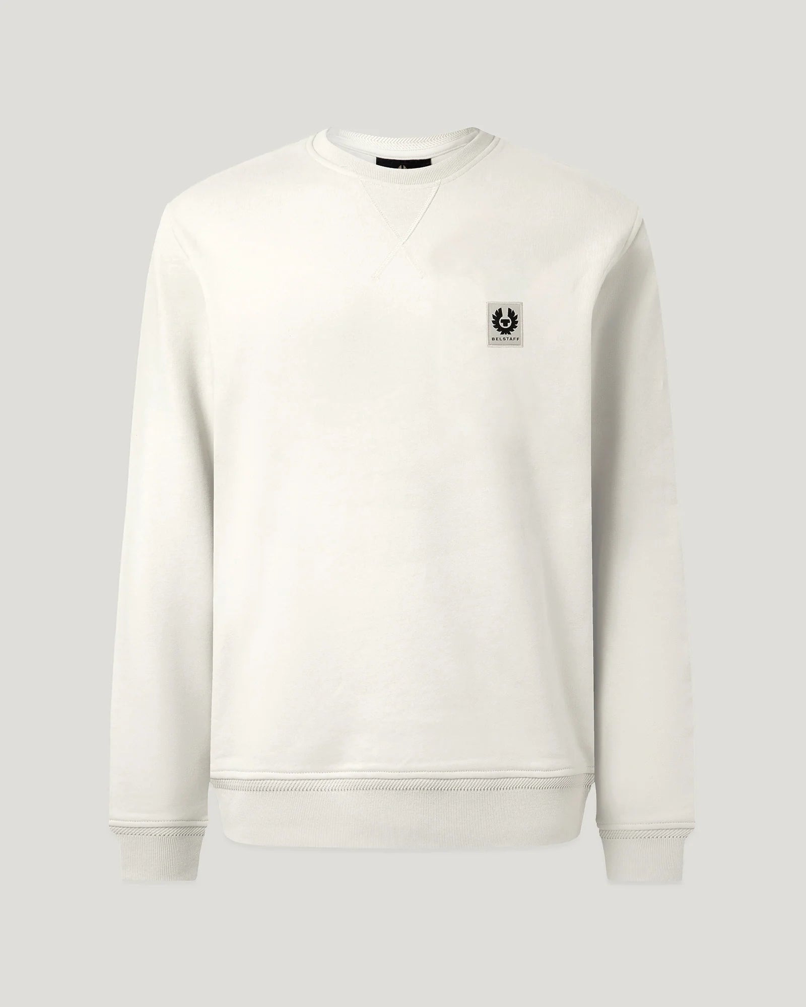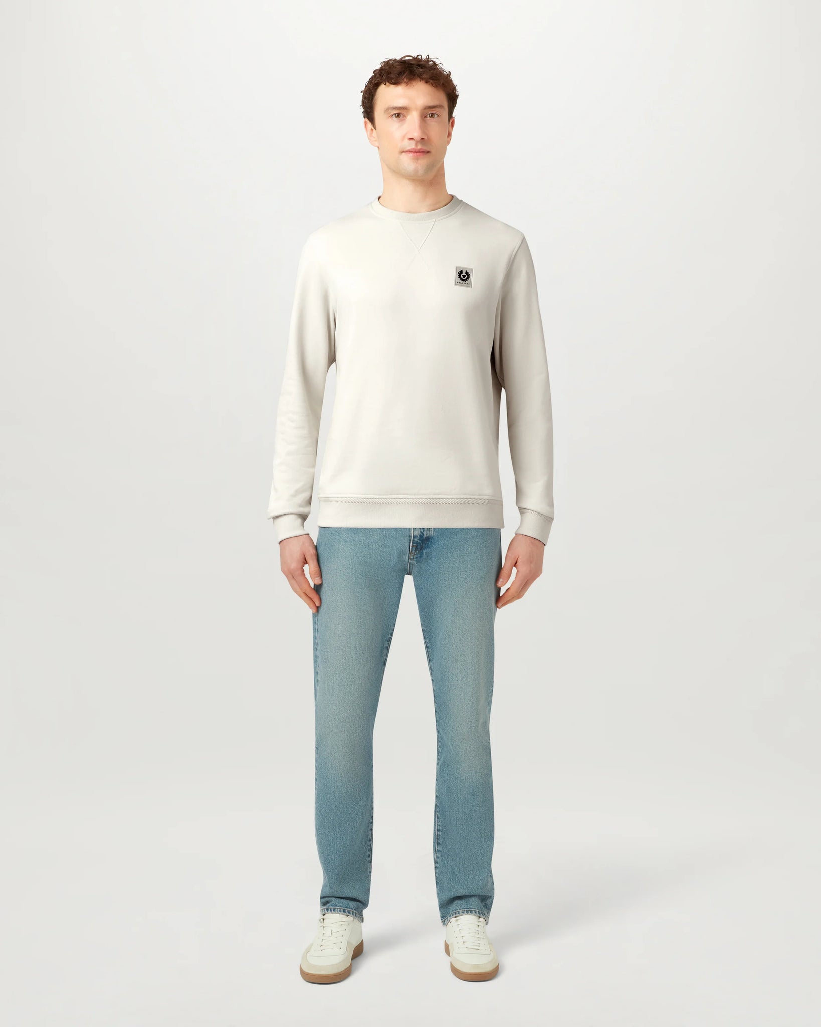 The Belstaff Sweatshirt. Simple and relaxed with a subtle Phoenix emblem on the chest, this easy jumper is fresh in Silver Birch