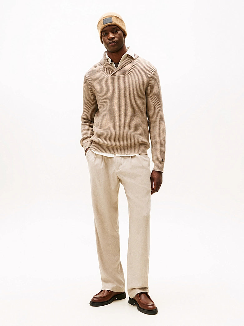 Upgrade your smart-casual looks with this jumper, crafted from wool and lyocell to a rib-knit design with a stylish shawl collar.